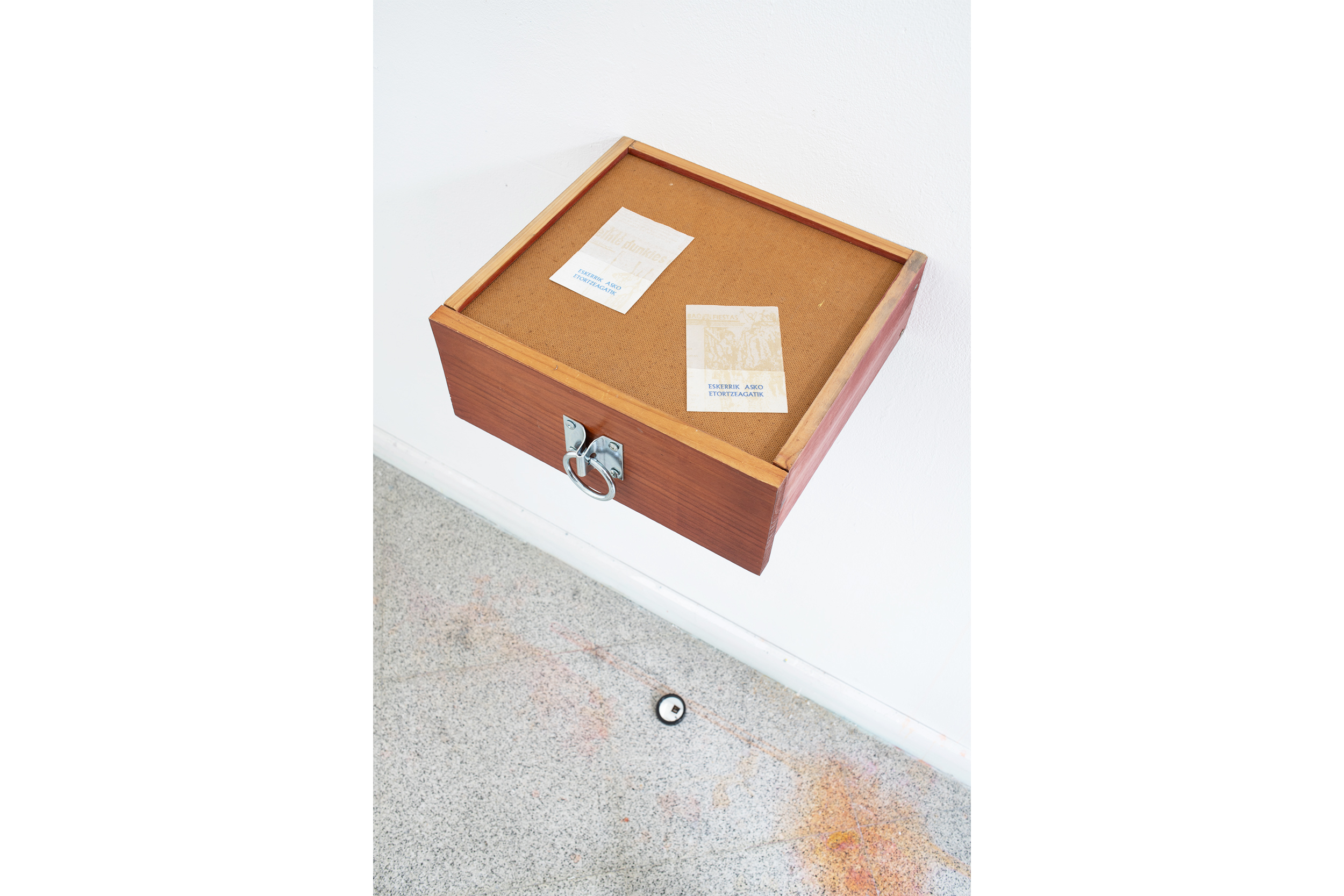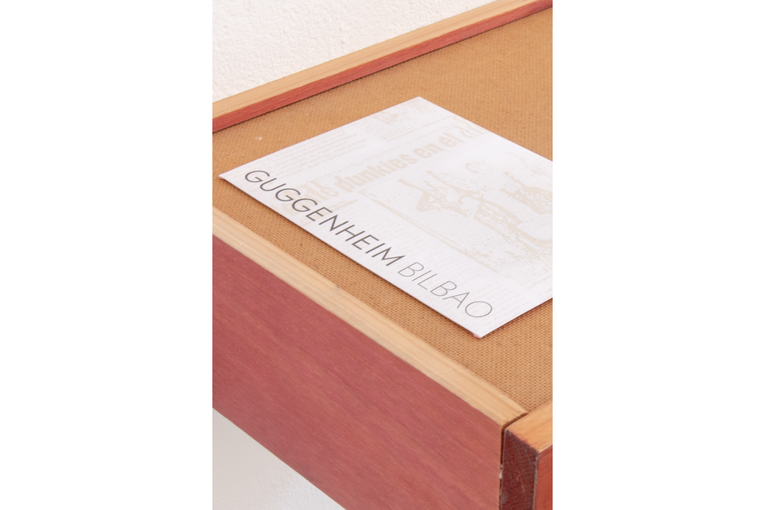 Hommage à Kaixa takes the form of a book kept inside an archive box from the Biscay Provincial Council, a device of dissident memory that oscillates between administrative coldness and emotional weight, between what is preserved and what is forgotten. Inside, a sound chip endlessly repeats a phrase in Mandarin 概念艺术确实很危险 spoken by a Chinese woman living in Bilbao, who sells Amazon “surprise packages”, whom Matauko employs as objects of oblivion in IYKYK. This gesture transforms the voice into an echo that expands beyond the enclosure of the box, persisting as a tribute to that which resists and remains outside any attempt at assimilation.