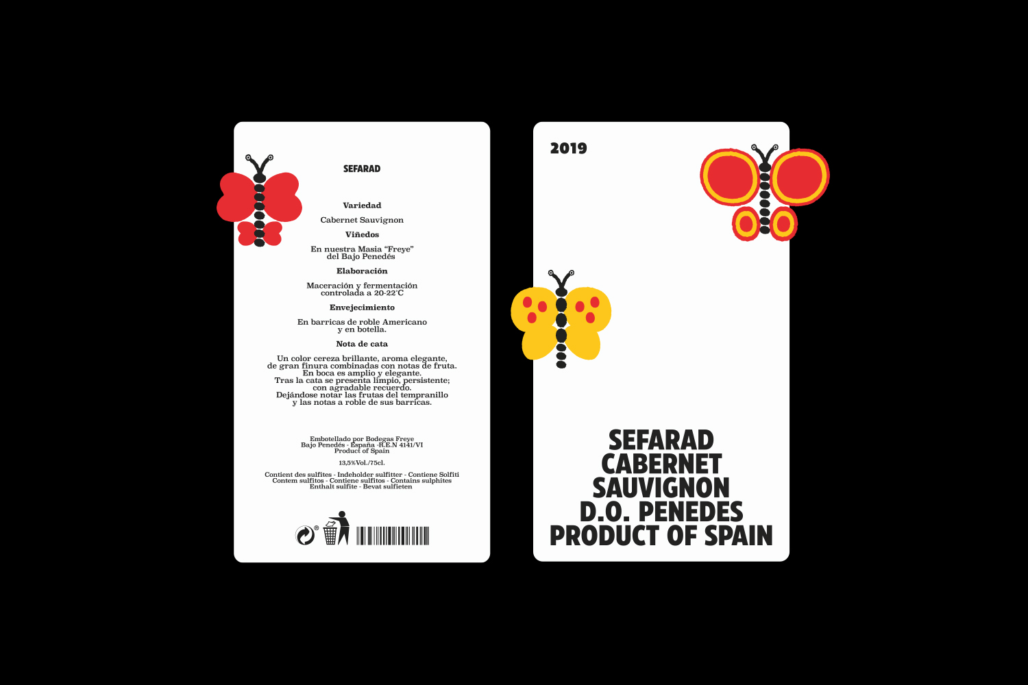 Commissioned to design a kosher Spanish wine label, to be sold in Israel. Sefarad is the Hebrew word for Spain, and the butterflies featured in the design represent the diaspora of the Jewish people. The butterflies were created by desintegrating and choosing elements from Dick Bruna’s illustrations found on his personal website – the globally acclaimed illustrator and father of ‘Miffy’, the most famous bunny in the world. These replica images allowed me to create a digital collage, and this combined with Eastman Condensed led to a unique work, which doesn’t follow traditional wine label conventions.